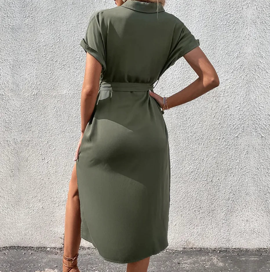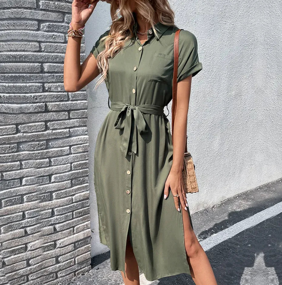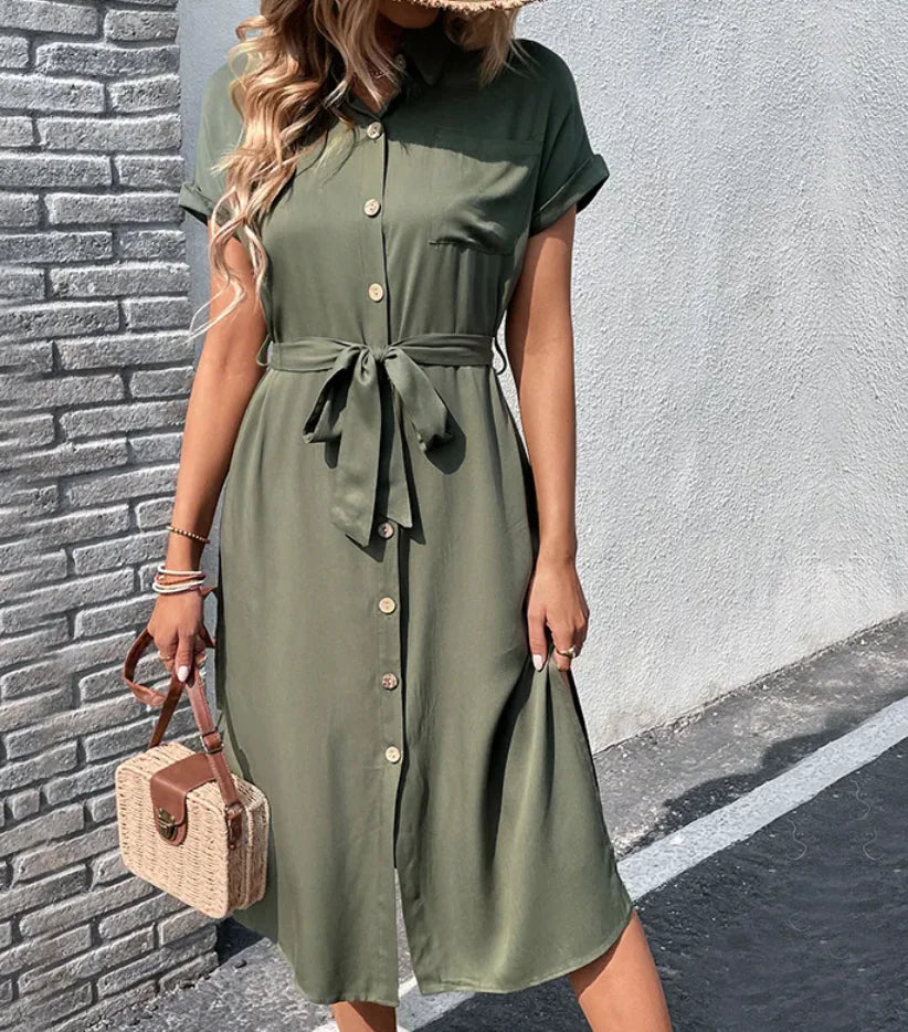 Šaty Celeste kombinují eleganci a pohodlí ve všestranném designu. Tato lehká košile s předními knoflíky a volným páskem zvýrazňuje postavu a dodává jí ženský nádech, zatímco funkční kapsy dodávají praktičnost bez kompromisů v oblasti stylu.